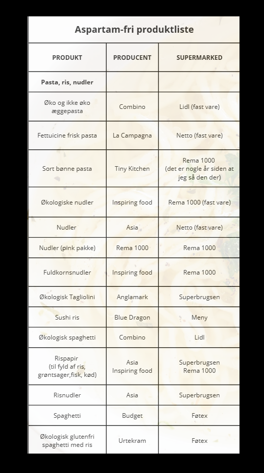 Aspartam-fri produktliste
