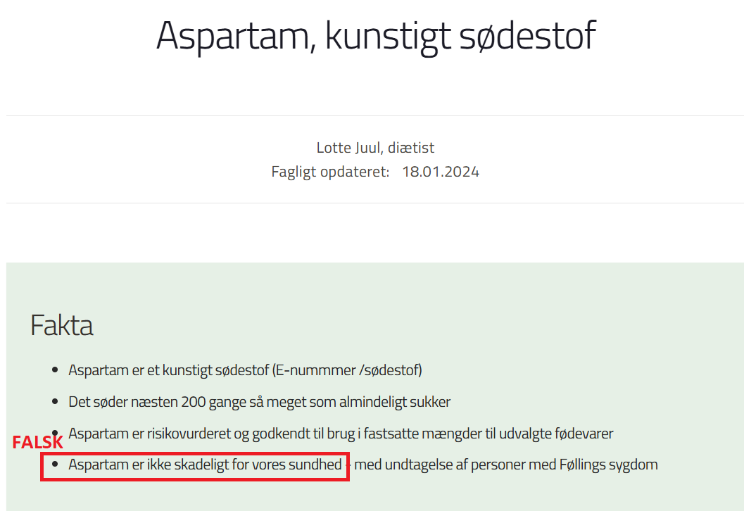 Der er mange misinformationer på internettet om at aspartam skulle være uskadeligt, ufarligt og at det er 100% sikkert fra autoriteterne her i Danmark.