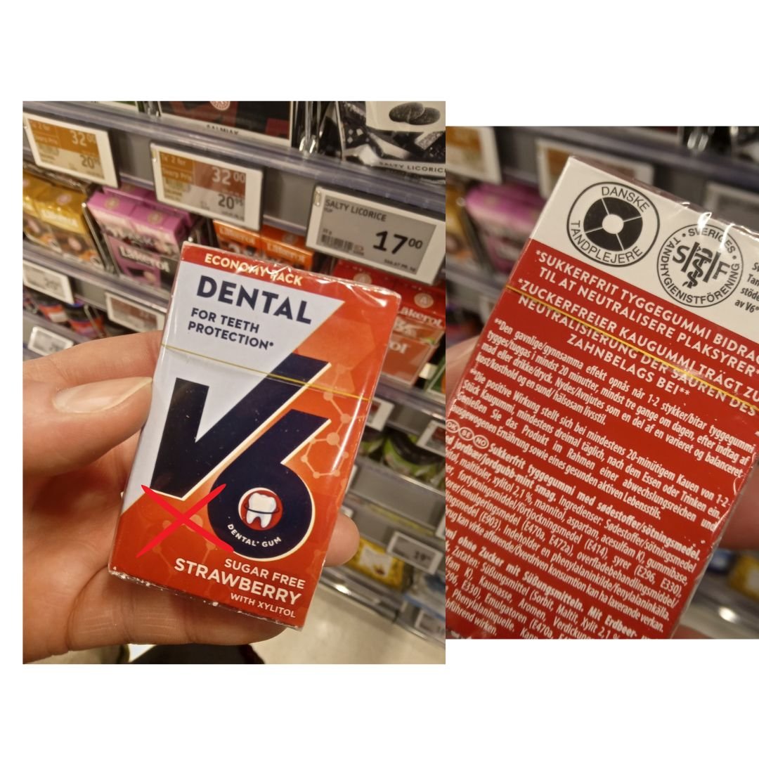 V6 tyggegummi med aspartam